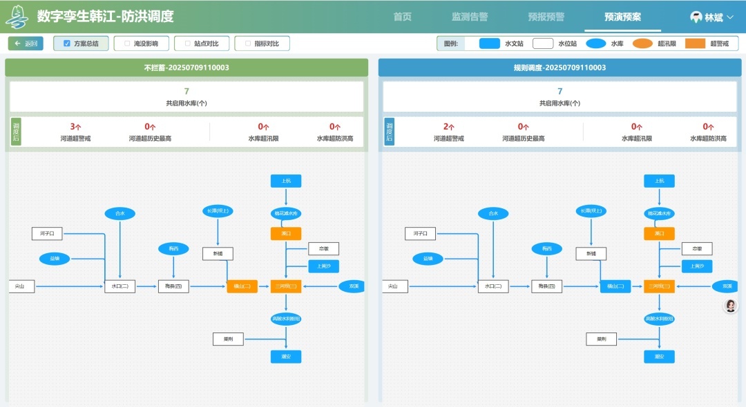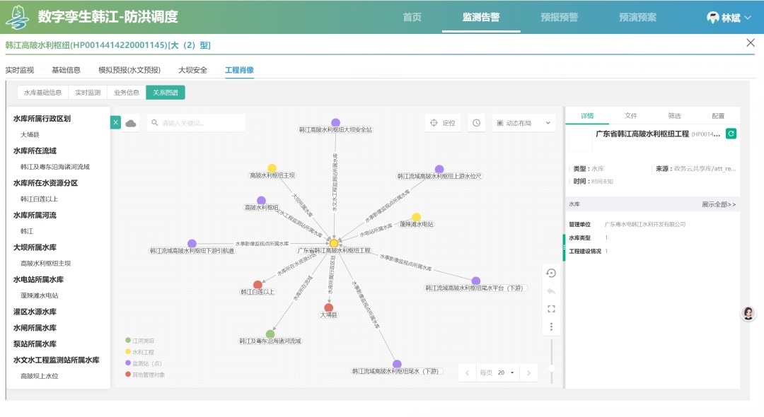 面对2025年韩江可能出现的编号洪水,省水利厅迅速组建由厅科技处、省韩江局、省水文局、省水科院组成的联合攻坚团队,以数字孪生北江为蓝本,严格遵循“统一技术框架、统一界面风格、统一用户登录”标准,基于省级数字孪生平台建成了“韩江流域一张图”,并整合既有的水文预报、洪水淹没分析、溃坝分析、沿海风暴潮预警等模型,快速完成校验优化。目前已实现韩江流域雨情、水情、工情动态可视化展示,以及“四预”功能初步应用,可支撑棉花滩水库、高陂水利枢纽、潮州供水枢纽等重点水利工程联合调度演算。